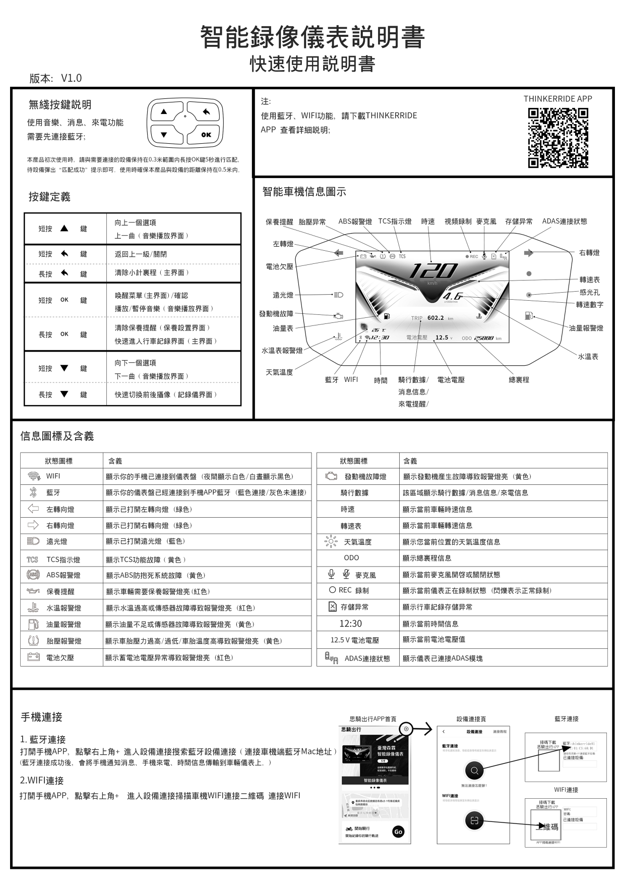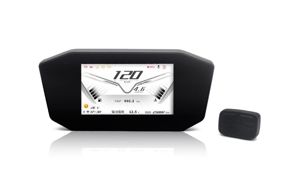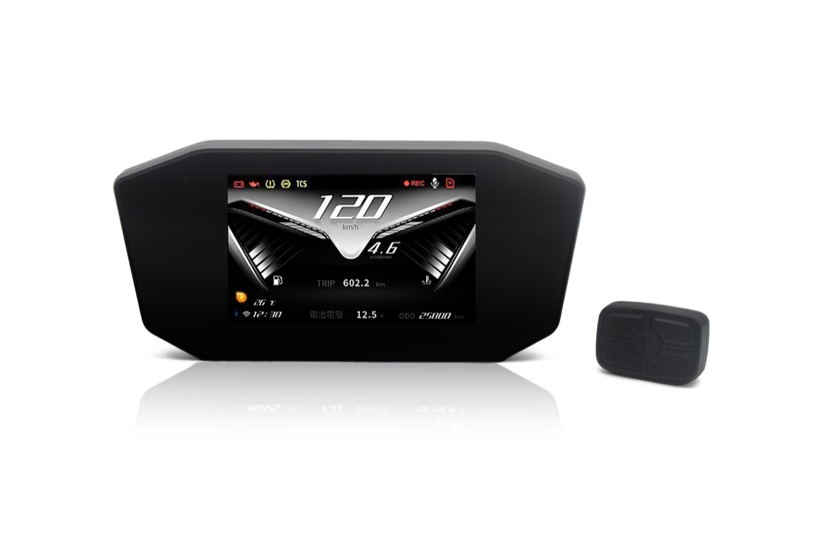 e-moto 智能錄像儀表是一款集多功能於一體的摩托車智能系統,旨在提升騎士的行車安全與娛樂體驗 。該儀表具備直覺的界面設計,能即時顯示時速、轉速、總里程 (ODO) 與小計里程 (Trip),並整合了油量、水溫、電池電壓及胎壓等關鍵車輛狀態監控 。透過多樣化的警示燈號(如 ABS、TCS 與發動機故障燈),系統能主動提醒車輛異常,確保騎行環境的透明與安全
