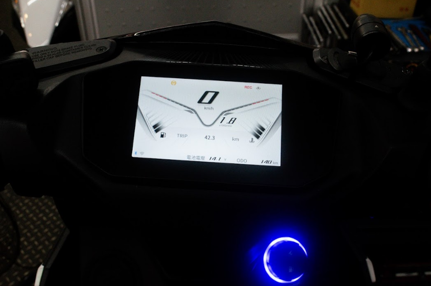 為適應不同環境,儀表提供晝夜模式自動切換與三級亮度調節,並支援中英文語系及公/英制單位轉換 。此外,系統還具備保養提醒功能,每行駛 1000 公里會自動提示,協助騎士進行車輛維護 。所有功能皆可透過專屬的無線按鍵進行遠端操控,讓騎士在不離開手把的情況下,輕鬆切換菜單與設置項